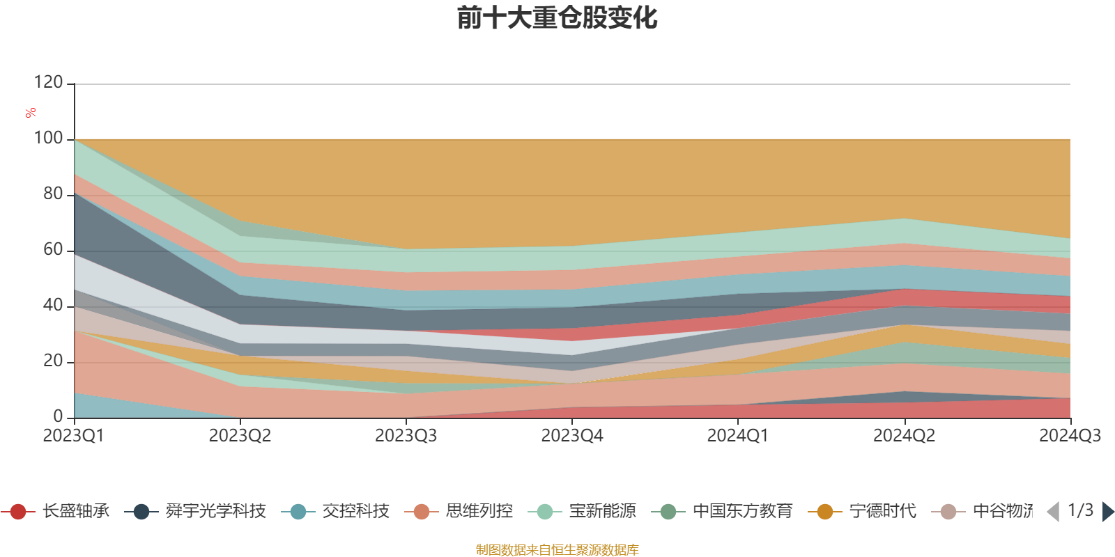 该基金持股集中度较高。截至2024年三季度末,基金十大重仓股分别是思维列控、香港交易所、中国燃气、长盛轴承、五洲新春、力诺特玻、美埃科技、中国东方教育、宁德时代、中谷物流。