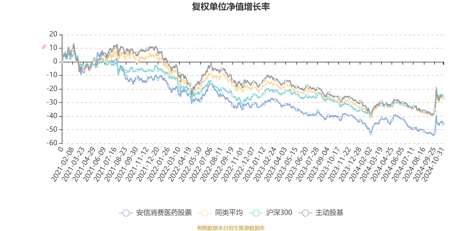 截至10月31日,安信消费医药股票近三个月复权单位净值增长率为7.07%,位于同类可比基金134/166;近半年复权单位净值增长率为-7.86%,位于同类可比基金162/166;近一年复权单位净值增长率为-11.44%,位于同类可比基金155/164;近三年复权单位净值增长率为-37.02%,位于同类可比基金118/150。
