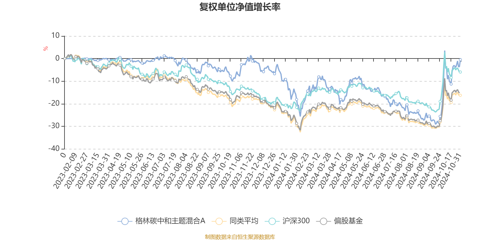 截至10月31日,格林碳中和主题混合A近三个月复权单位净值增长率为24.72%,位于同类可比基金32/536;近半年复权单位净值增长率为12.95%,位于同类可比基金87/535;近一年复权单位净值增长率为7.02%,位于同类可比基金138/469。
