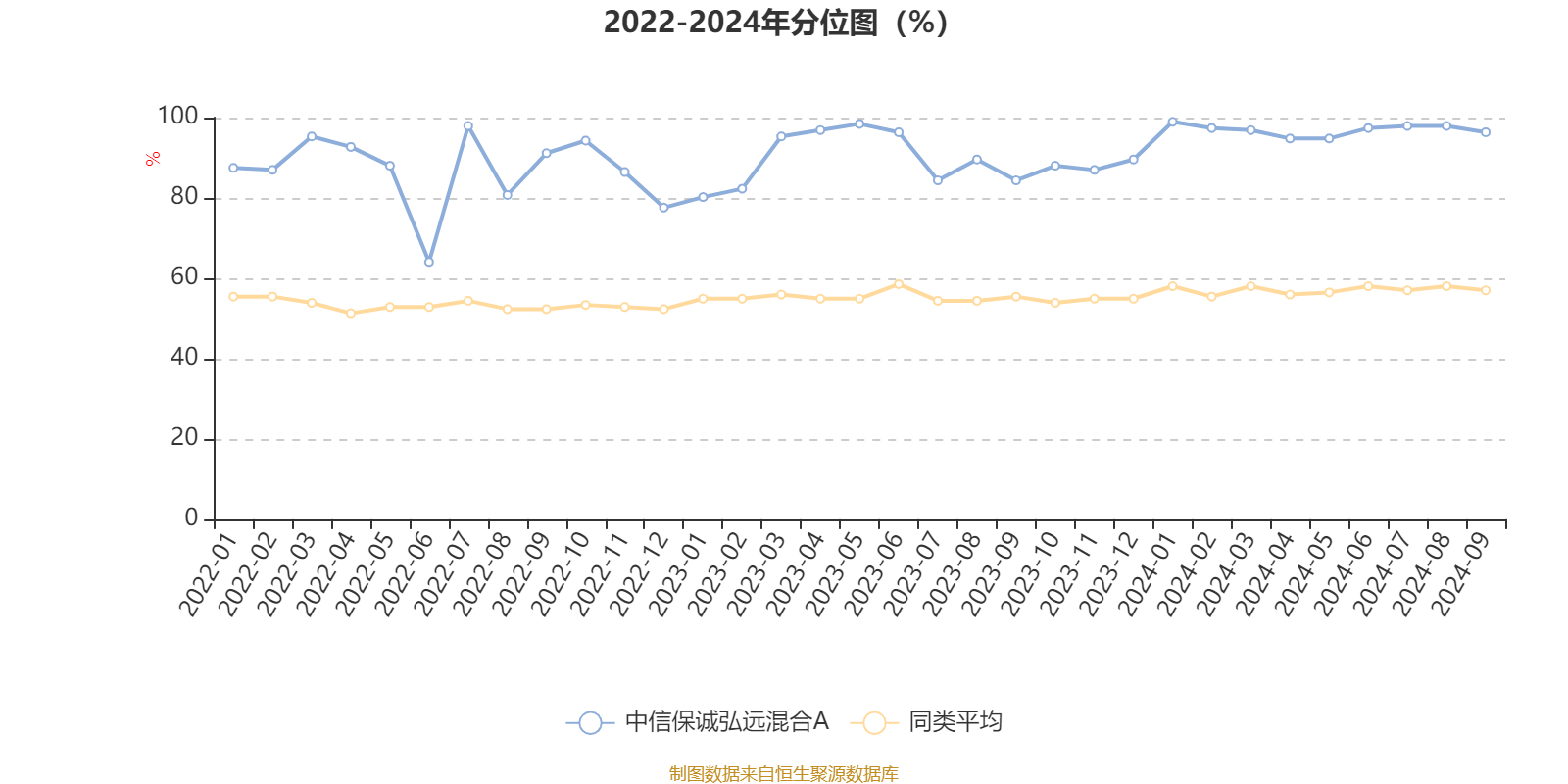 通过所选区间该基金净值增长率分位图,可以观察该基金与同类基金业绩比较情况。图为坐标原点到区间内某时点的净值增长率在同类基金中的分位数。