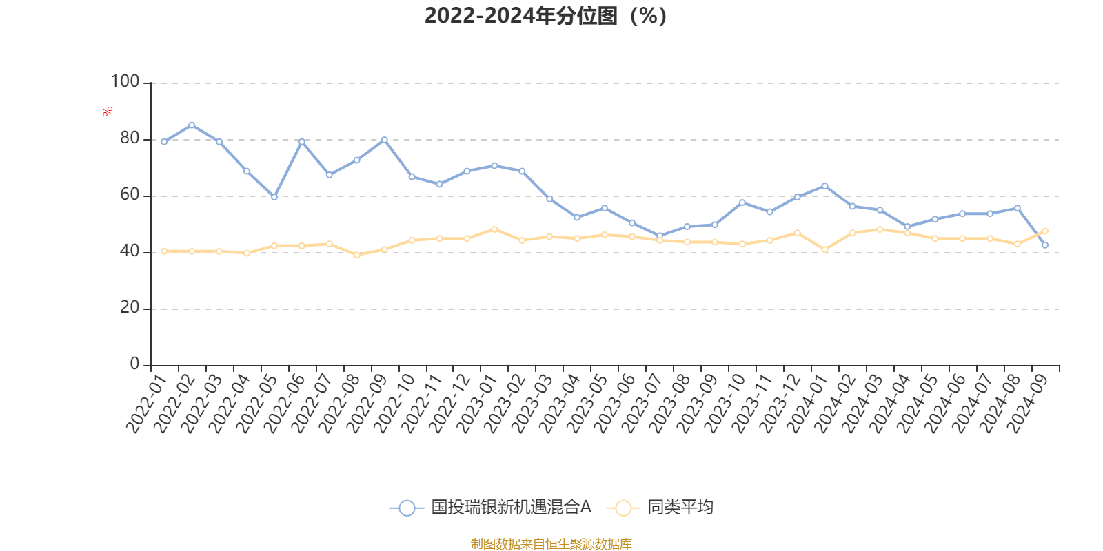 通过所选区间该基金净值增长率分位图,可以观察该基金与同类基金业绩比较情况。图为坐标原点到区间内某时点的净值增长率在同类基金中的分位数。