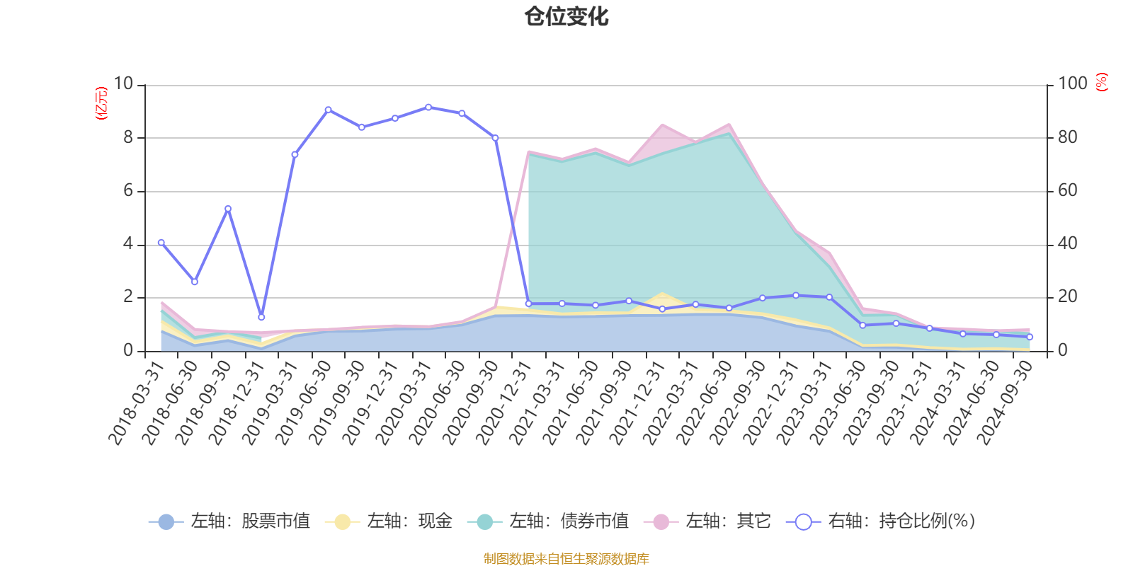 据定期报告数据统计,近三年平均股票仓位为13.18%,同类平均为18.61%。2020年一季度末基金达到91.63%的最高仓位,2024年三季度末最低,为5.38%。