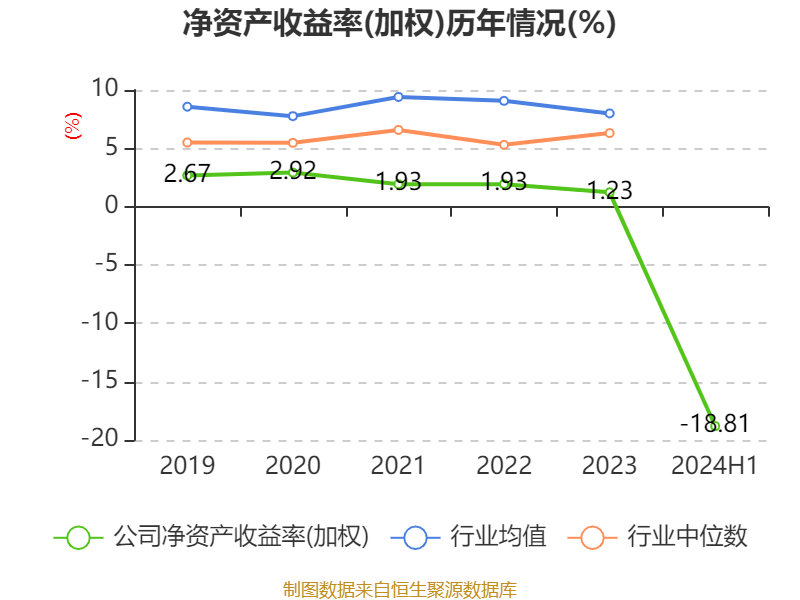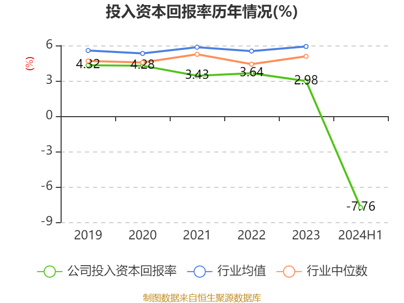 盈利能力方面, 2024年上半年公司加权平均净资产收益率为-18.81%,同比下降19.49个百分点。公司2024年上半年投入资本回报率为-7.76%,较上年同期下降9.45个百分点。