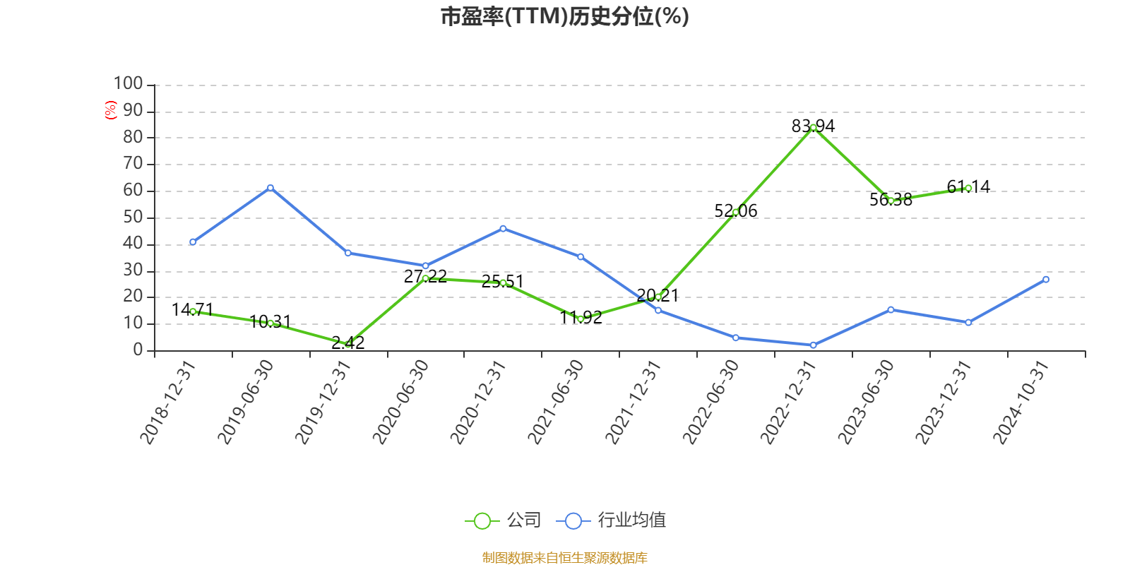 市盈率、市净率为负时,不显示当期分位数,会导致折线图中断。