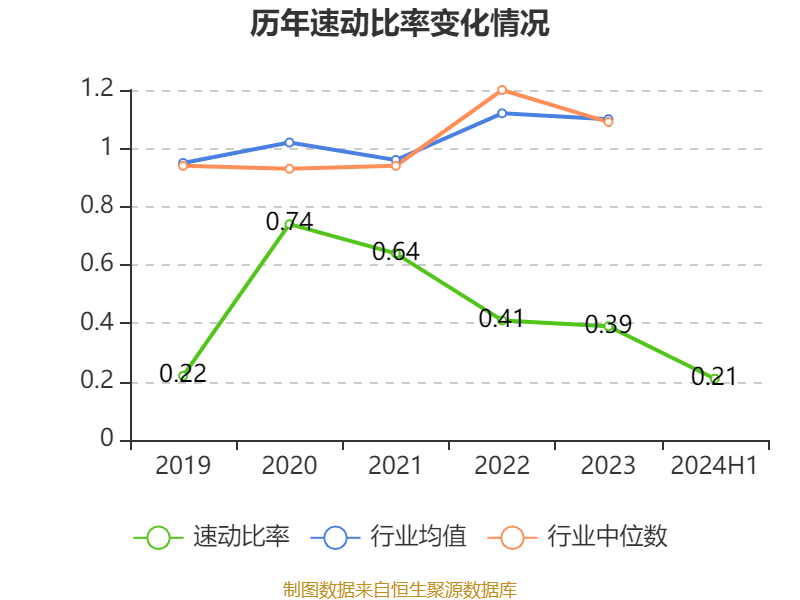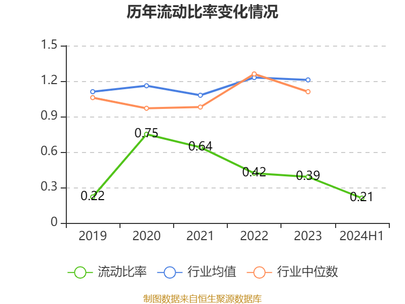 2024年上半年,公司流动比率为0.21,速动比率为0.21。