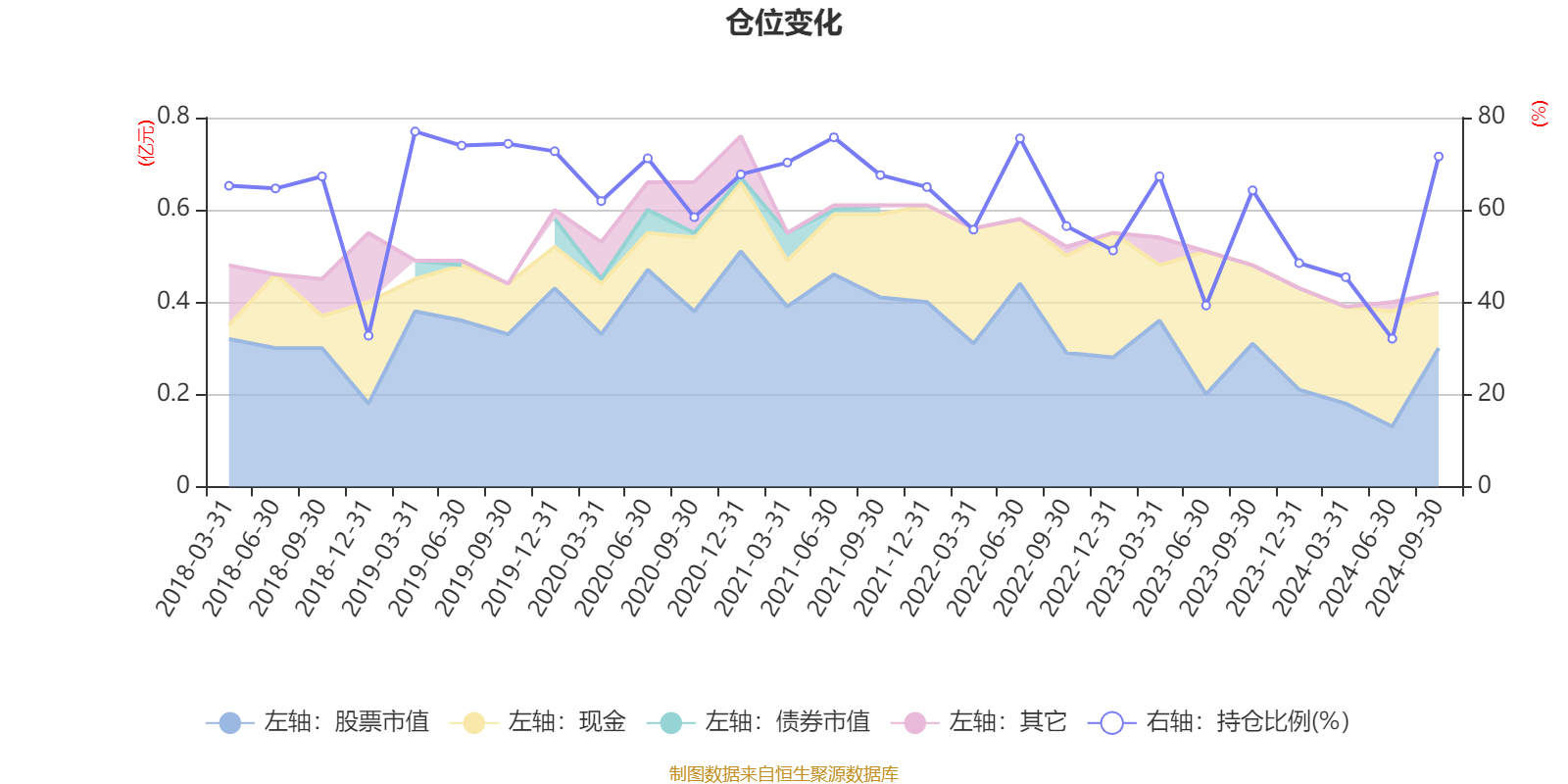 据定期报告数据统计,近三年平均股票仓位为56.01%,同类平均为40.52%。2019年一季度末基金达到76.99%的最高仓位,2024年上半年末最低,为32.08%。