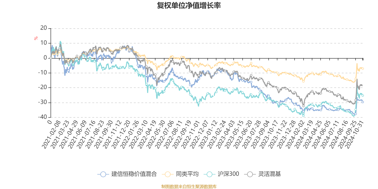 截至10月31日,建信恒稳价值混合近三个月复权单位净值增长率为8.00%,位于同类可比基金30/108;近半年复权单位净值增长率为7.05%,位于同类可比基金22/108;近一年复权单位净值增长率为-1.51%,位于同类可比基金80/108;近三年复权单位净值增长率为-32.94%,位于同类可比基金96/107。