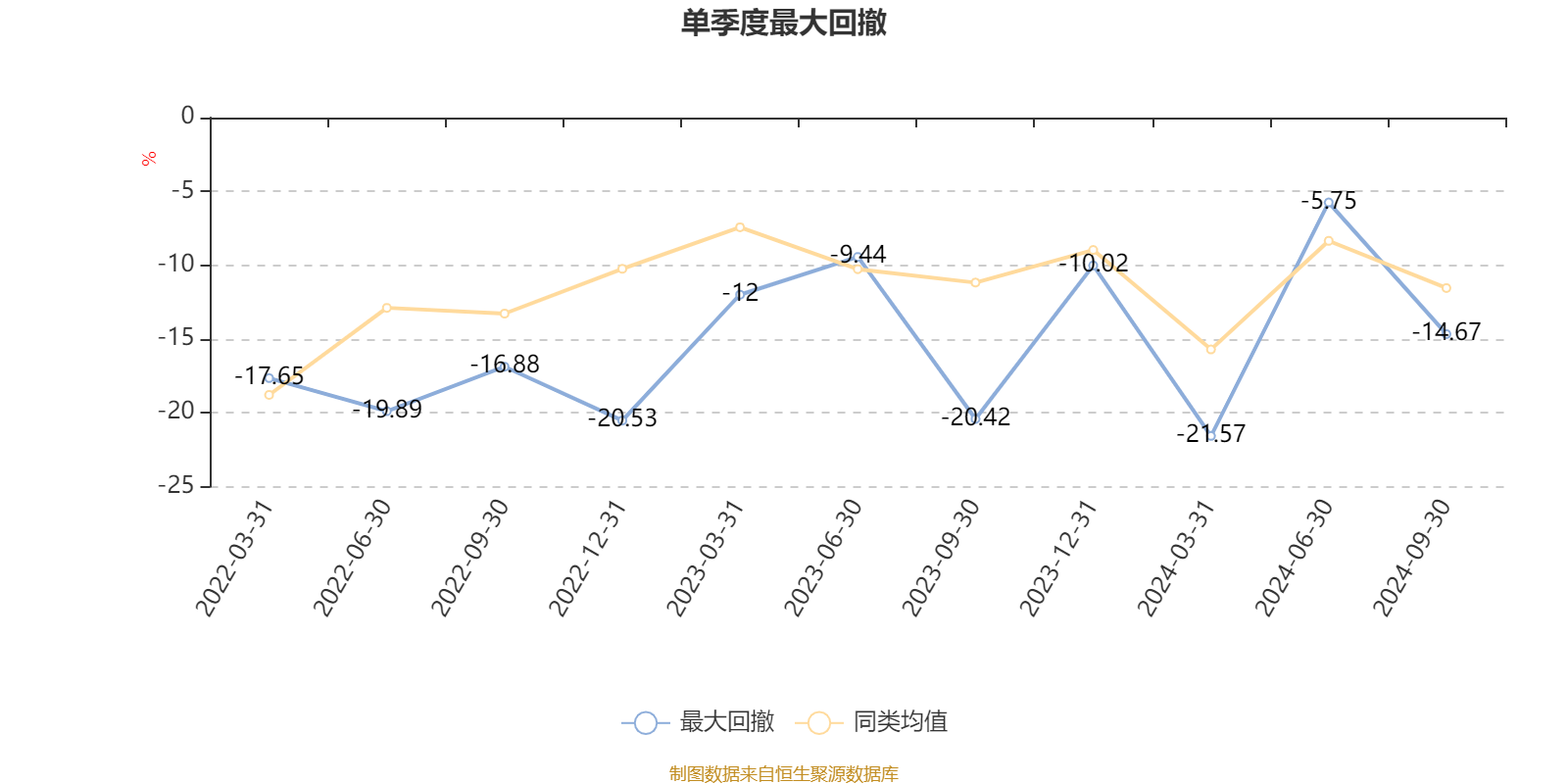 通过所选区间该基金净值增长率分位图,可以观察该基金与同类基金业绩比较情况。图为坐标原点到区间内某时点的净值增长率在同类基金中的分位数。
