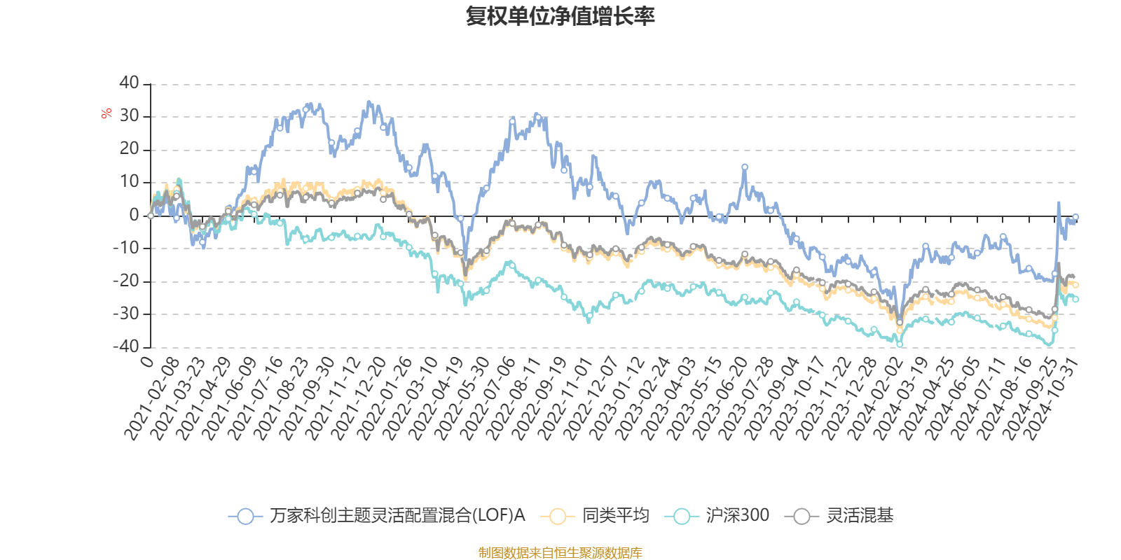 截至10月31日,万家科创主题灵活配置混合(LOF)A近三个月复权单位净值增长率为12.87%,位于同类可比基金337/920;近半年复权单位净值增长率为8.97%,位于同类可比基金232/920;近一年复权单位净值增长率为19.58%,位于同类可比基金43/920;近三年复权单位净值增长率为-18.00%,位于同类可比基金288/892。