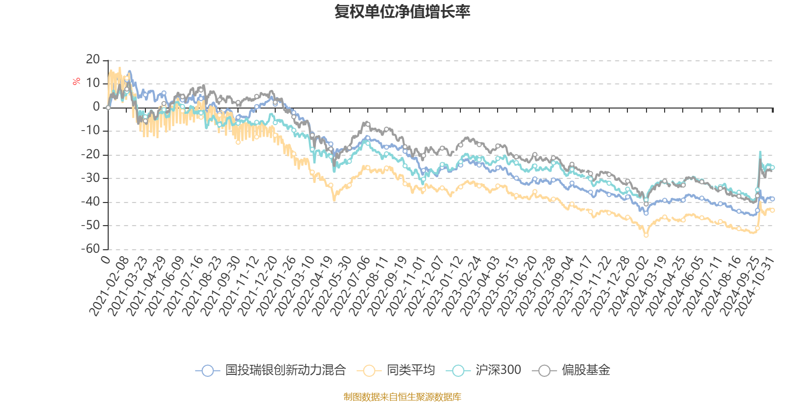 截至10月31日,国投瑞银创新动力混合近三个月复权单位净值增长率为4.63%,位于同类可比基金228/256;近半年复权单位净值增长率为-0.88%,位于同类可比基金206/256;近一年复权单位净值增长率为-5.54%,位于同类可比基金209/255;近三年复权单位净值增长率为-36.38%,位于同类可比基金157/219。