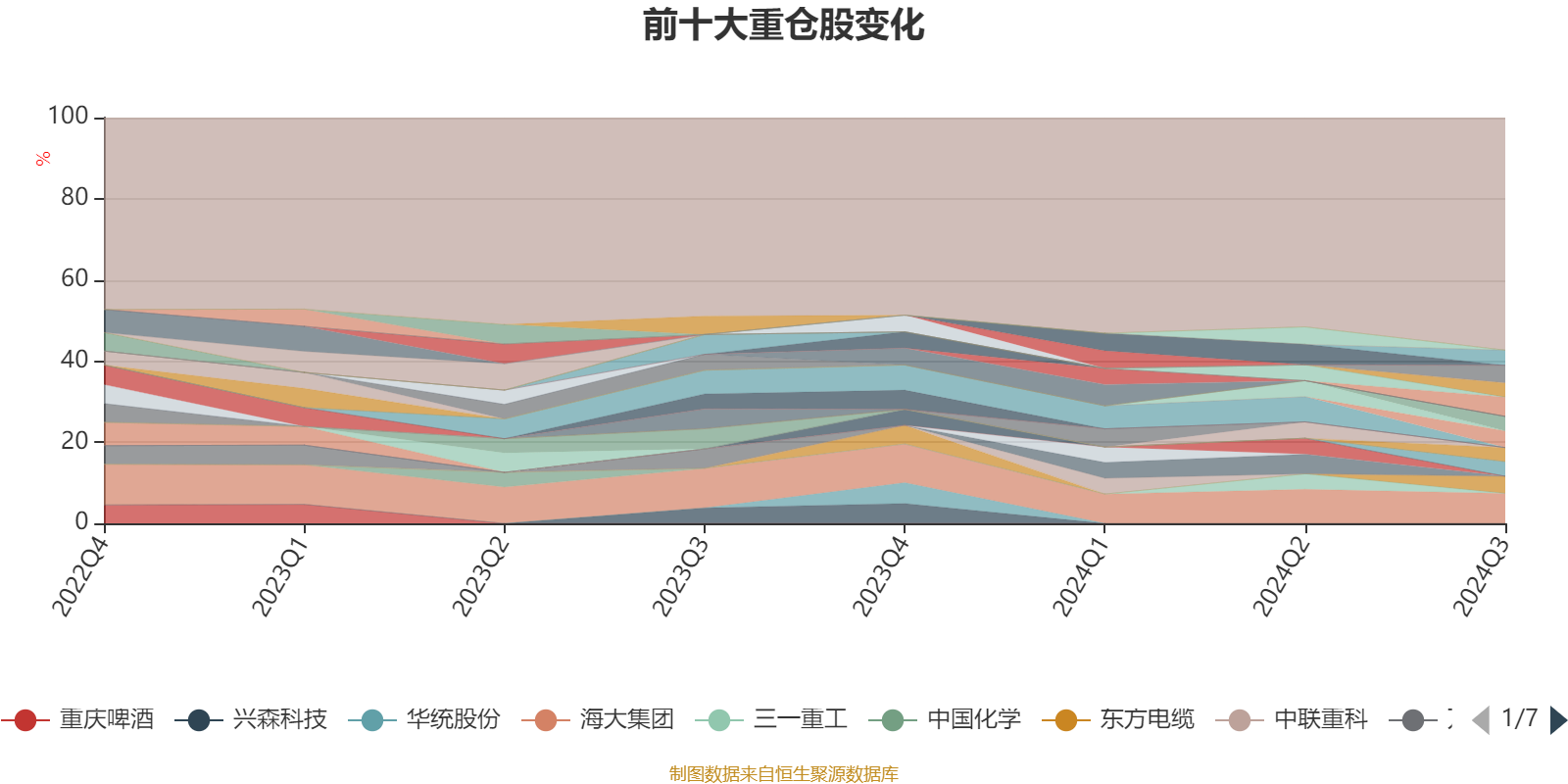 截至2024年三季度末,基金十大重仓股分别是海大集团、中国铝业、紫金矿业、东方电缆、立讯精密、海尔智家、太阳纸业、中航重机、美的集团、电投能源。