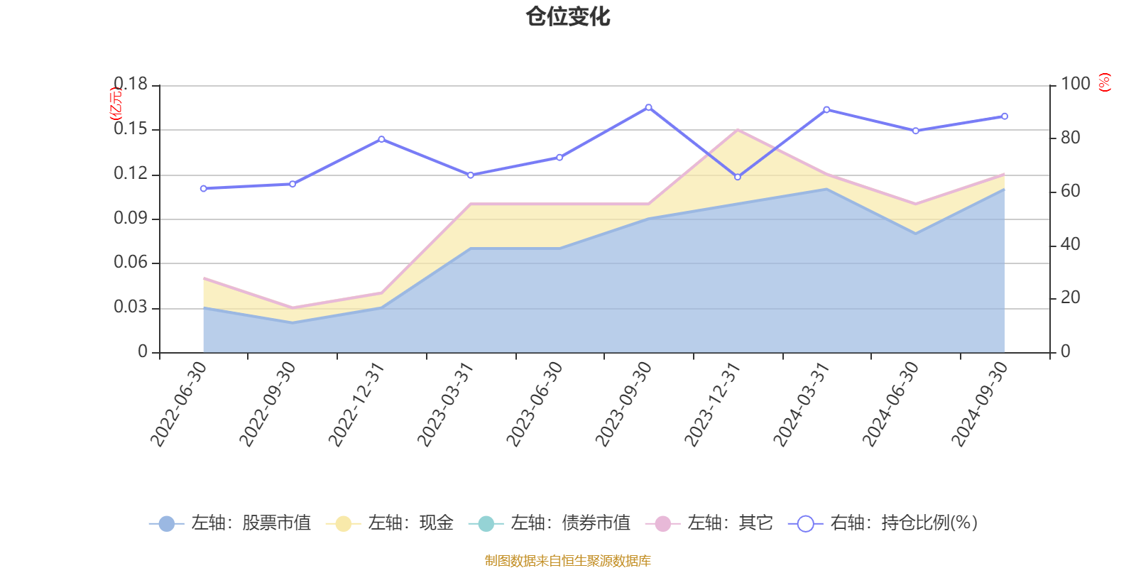 据定期报告数据统计,成立以来平均股票仓位为76.31%,同类平均为83.22%。2023年三季度末基金达到91.73%的最高仓位,2022年上半年末最低,为61.34%。