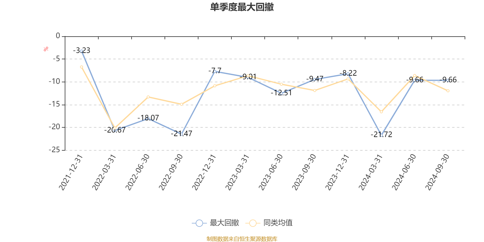 截至10月31日,基金近三年最大回撤为44.6%,同类可比基金排名244/390。其中,单季度最大回撤出现在2024年一季度,为21.72%。