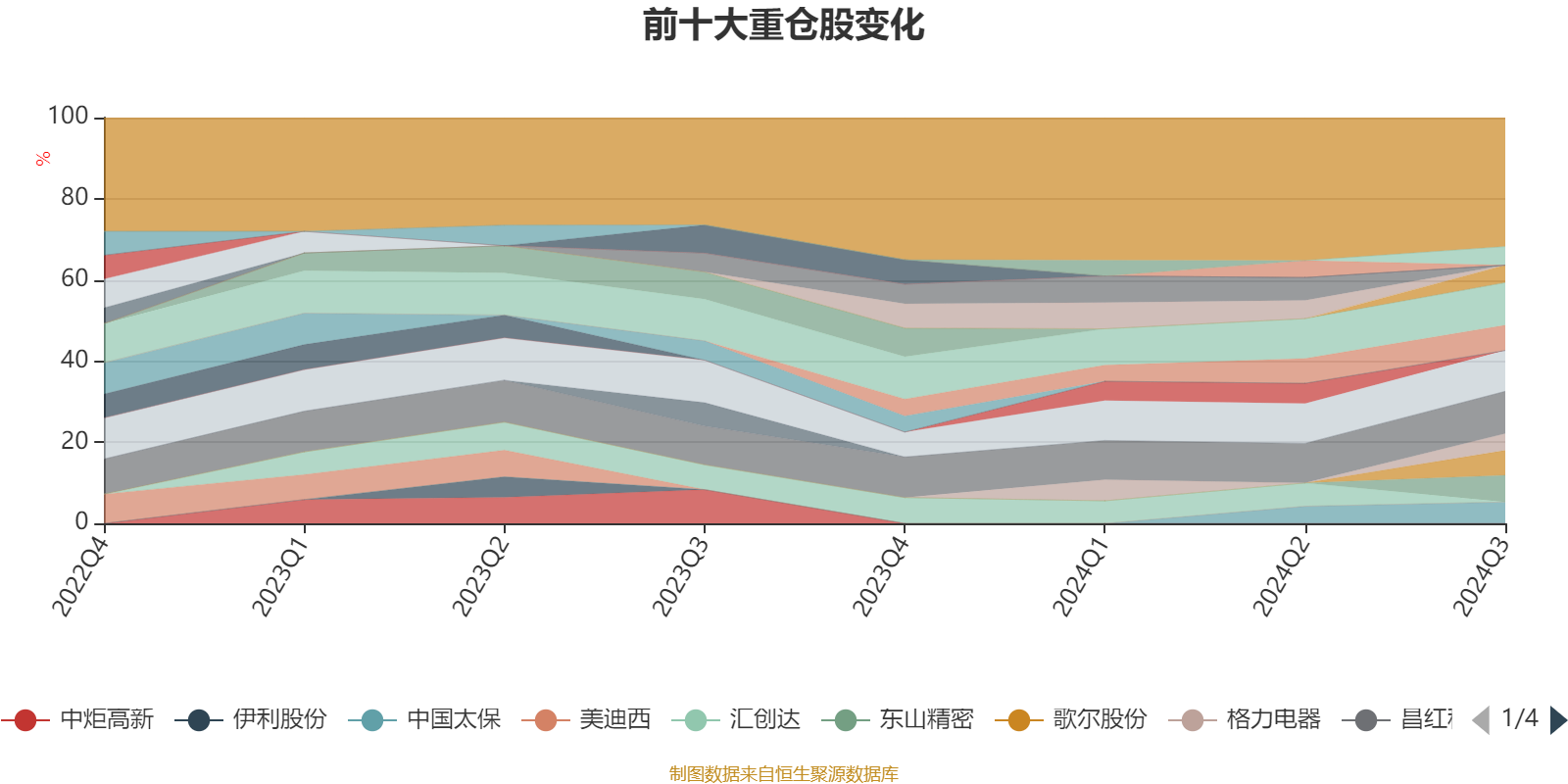 该基金持股集中度较高,近2年前十大重仓股集中度长期超过60%。截至2024年三季度末,基金十大重仓股分别是新北洋、昌红科技、捷顺科技、东山精密、立讯精密、歌尔股份、中国太保、领益智造、阿特斯、格力电器。