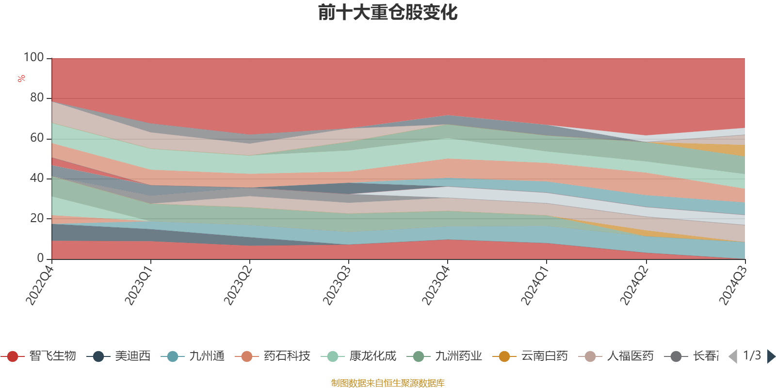 该基金持股集中度较高,近2年前十大重仓股集中度长期超过60%。截至2024年三季度末,基金十大重仓股分别是恒瑞医药、人福医药、九州通、药明康德、迈瑞医疗、亚辉龙、华润三九、恩华药业、泰格医药、新产业。