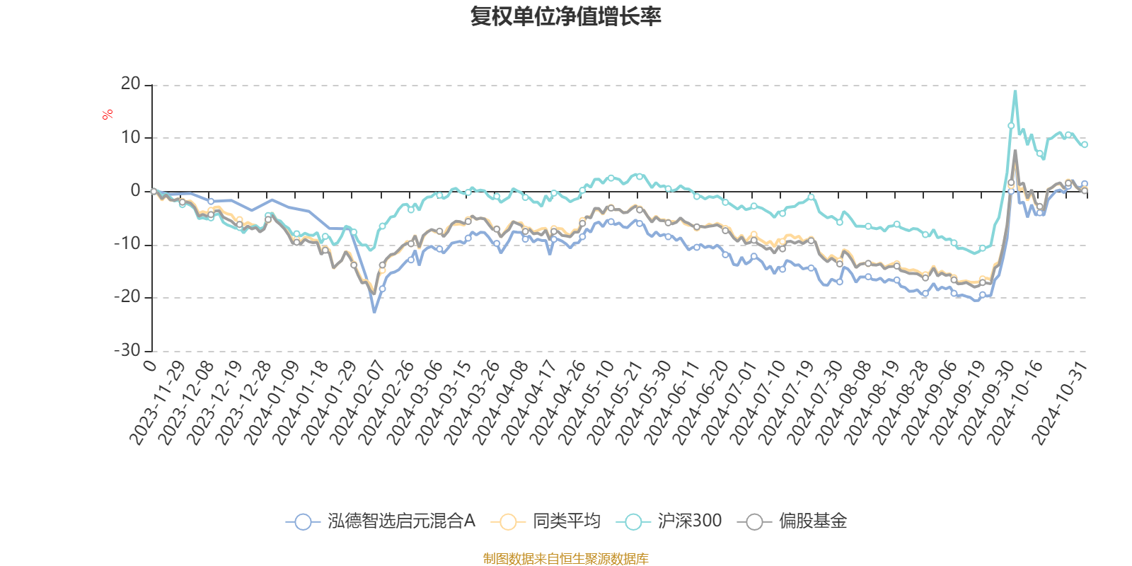 截至10月31日,泓德智选启元混合A近三个月复权单位净值增长率为18.27%,位于同类可比基金111/536;近半年复权单位净值增长率为9.84%,位于同类可比基金141/535。