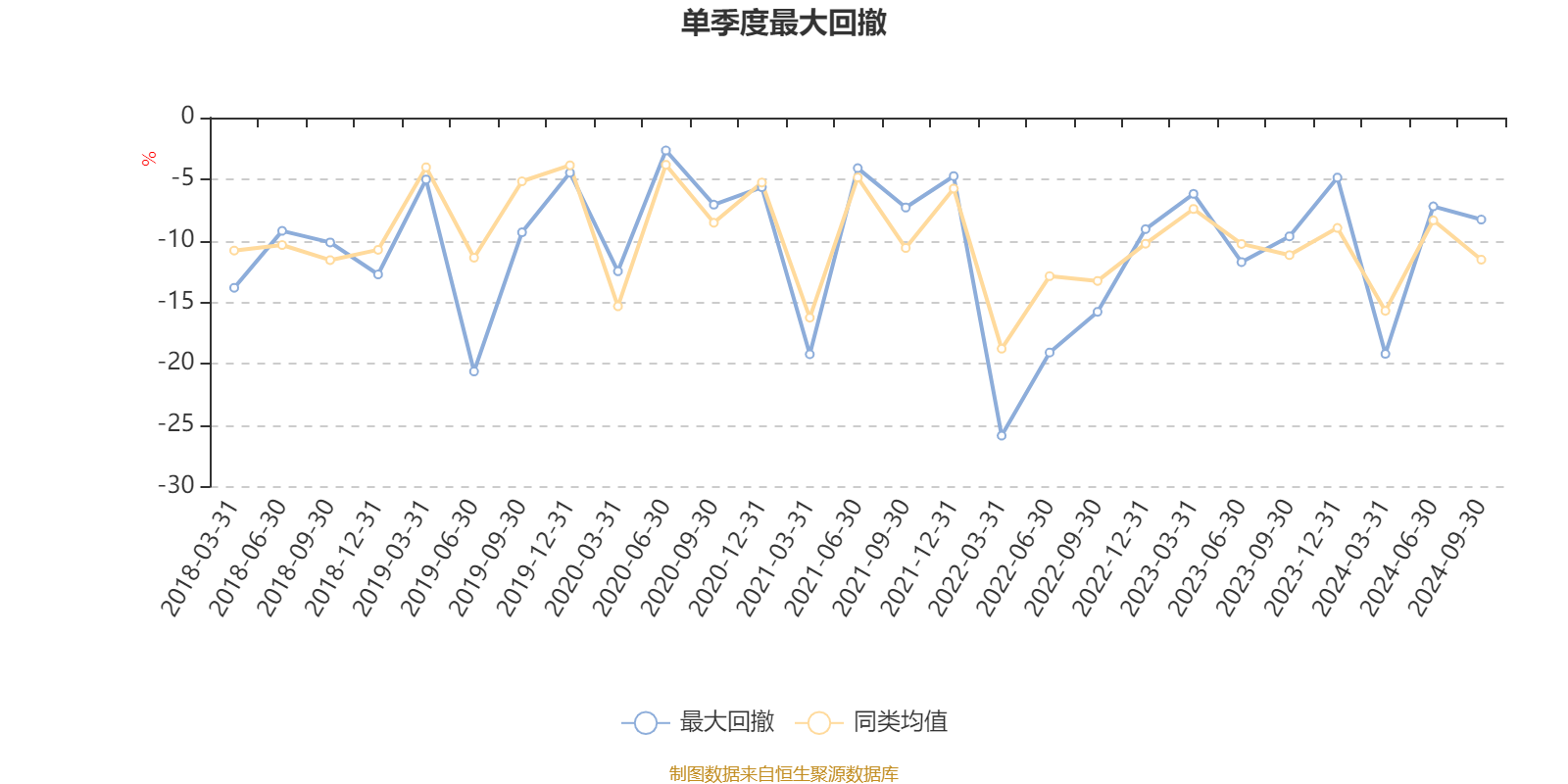 通过所选区间该基金净值增长率分位图,可以观察该基金与同类基金业绩比较情况。图为坐标原点到区间内某时点的净值增长率在同类基金中的分位数。