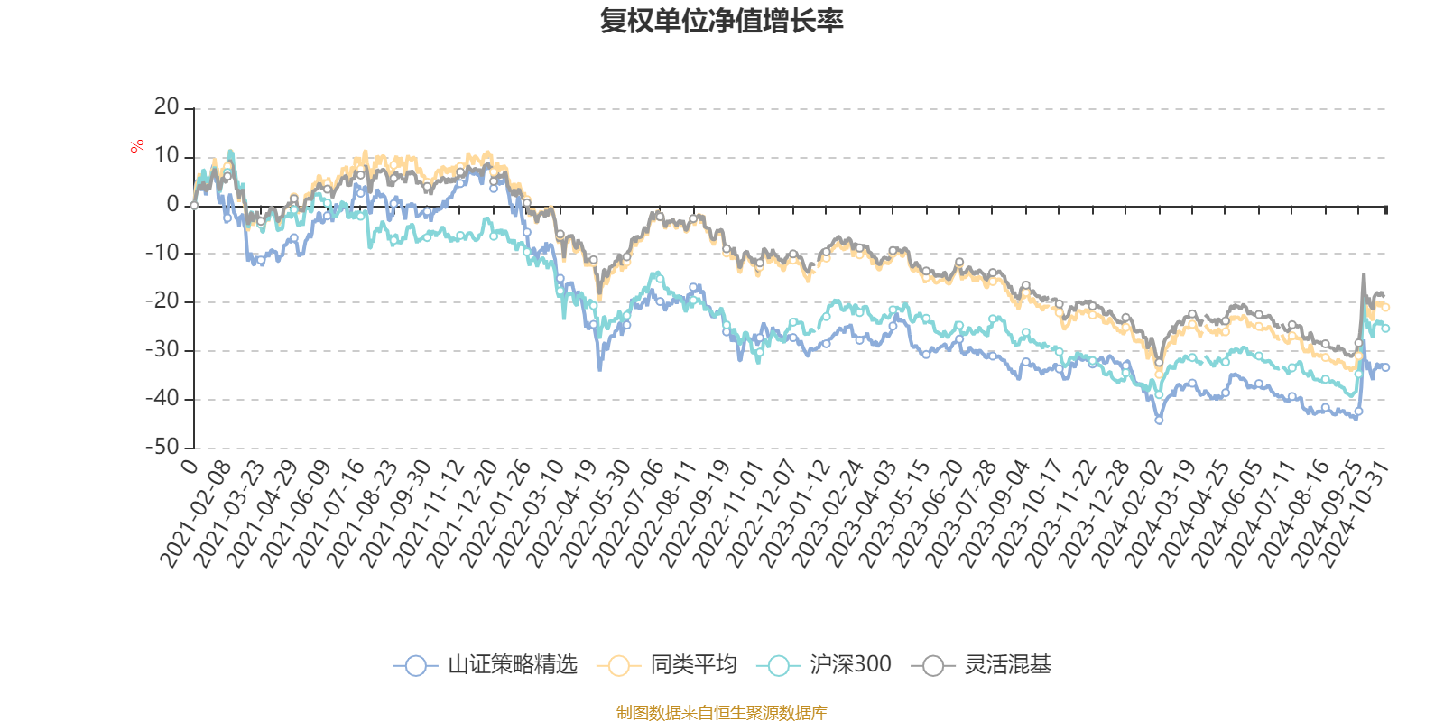 截至10月31日,山证策略精选近三个月复权单位净值增长率为13.77%,位于同类可比基金307/920;近半年复权单位净值增长率为5.50%,位于同类可比基金369/920;近一年复权单位净值增长率为-1.40%,位于同类可比基金594/920;近三年复权单位净值增长率为-34.31%,位于同类可比基金629/892。