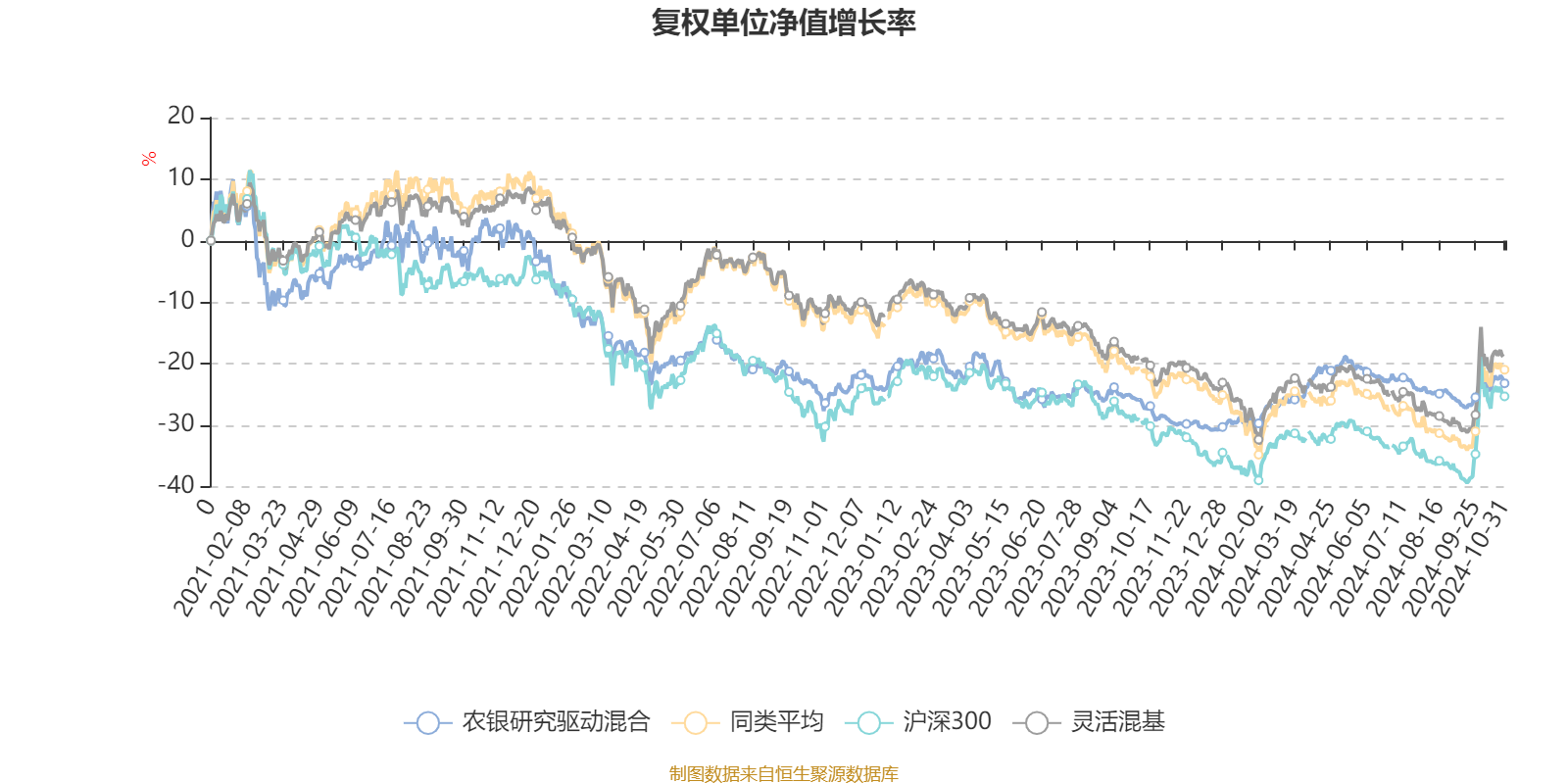 截至10月31日,农银研究驱动混合近三个月复权单位净值增长率为1.19%,位于同类可比基金867/920;近半年复权单位净值增长率为-2.63%,位于同类可比基金789/920;近一年复权单位净值增长率为7.46%,位于同类可比基金283/920;近三年复权单位净值增长率为-25.91%,位于同类可比基金451/892。