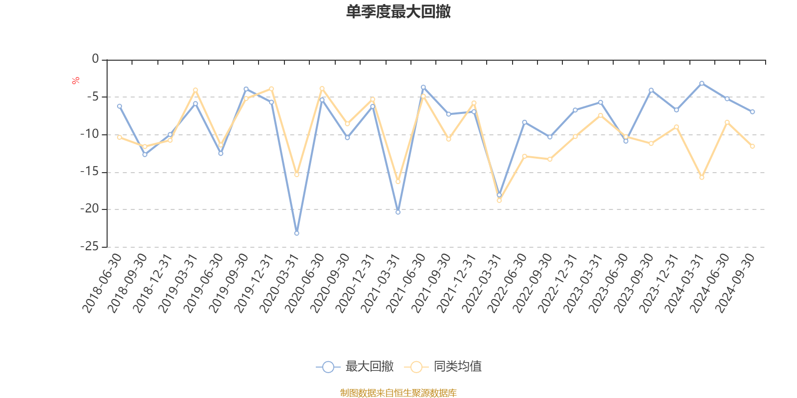 通过所选区间该基金净值增长率分位图,可以观察该基金与同类基金业绩比较情况。图为坐标原点到区间内某时点的净值增长率在同类基金中的分位数。