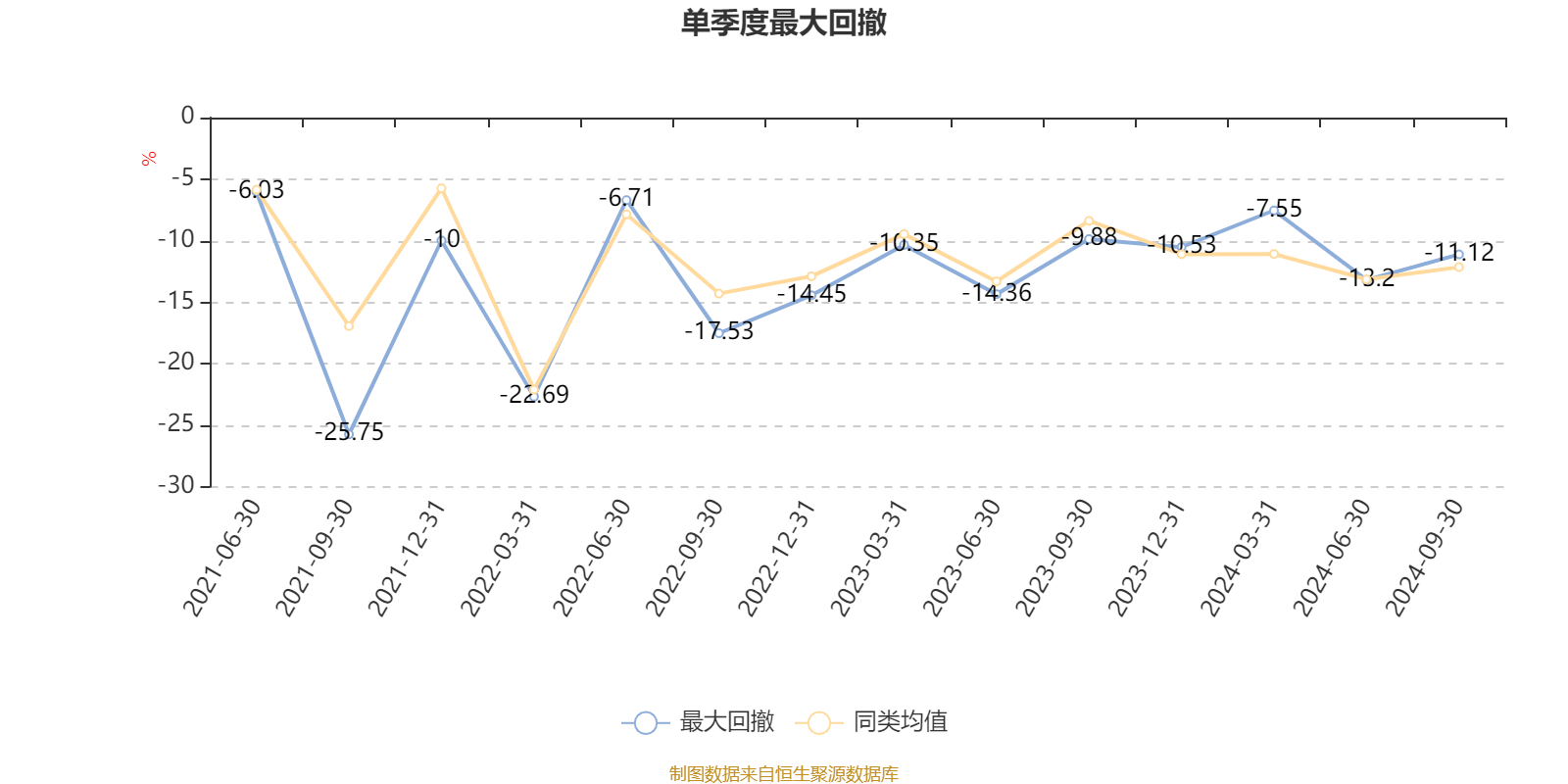 截至10月31日,基金近三年最大回撤为53.4%,同类可比基金排名8/113。其中,单季度最大回撤出现在2021年三季度,为25.75%。
