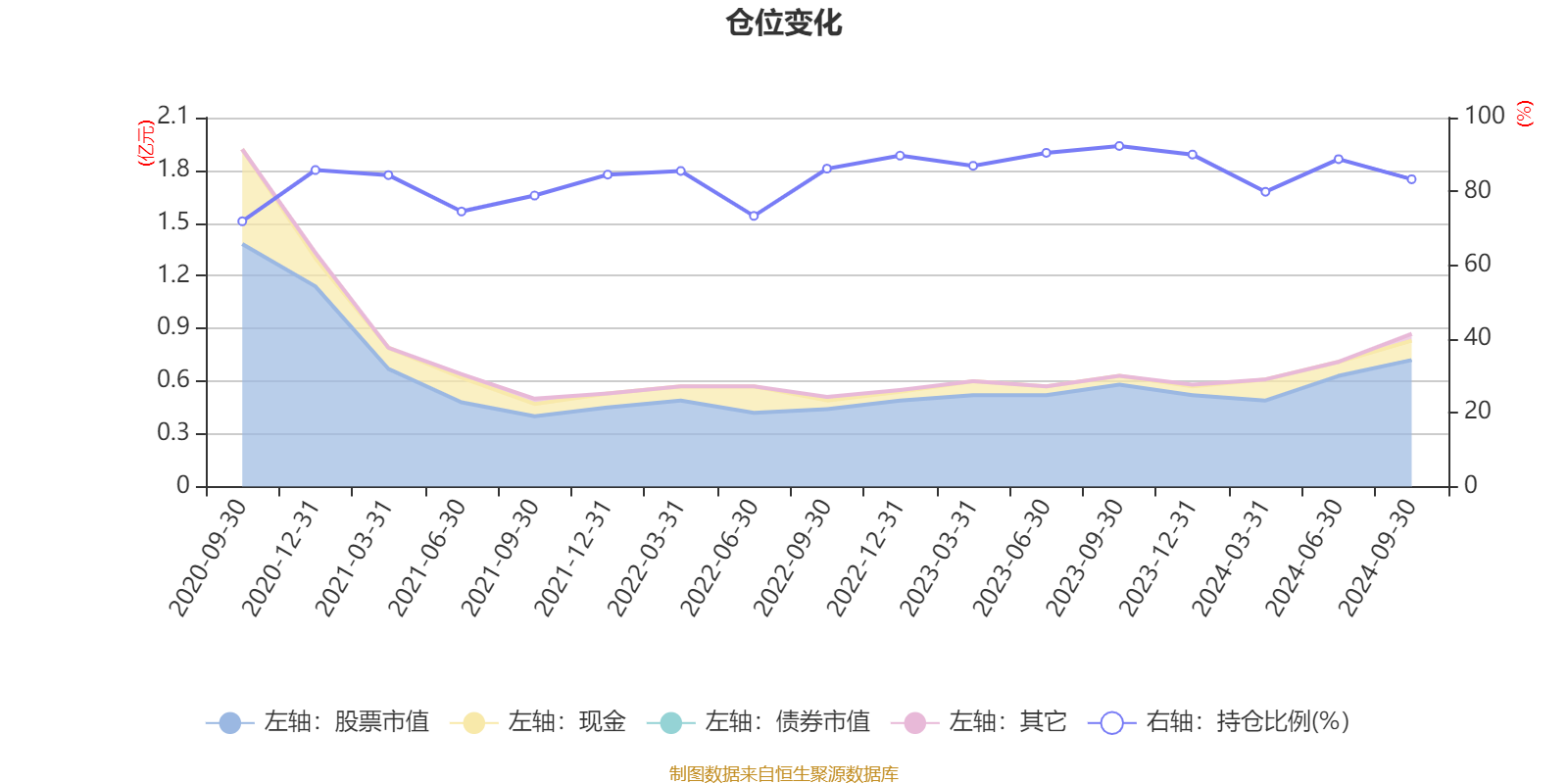据定期报告数据统计,近三年平均股票仓位为85.91%,同类平均为83.22%。2023年三季度末基金达到92.31%的最高仓位,2020年三季度末最低,为71.89%。