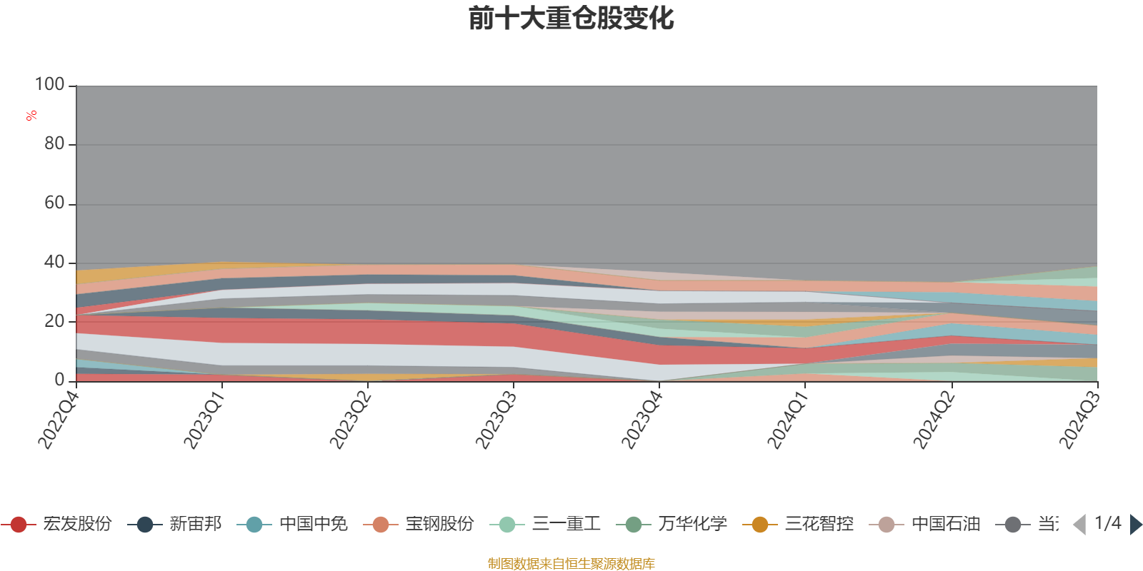 截至2024年三季度末,基金十大重仓股分别是宁德时代、中国平安、万华化学、中国石化、宁波银行、泸州老窖、中国海油、工商银行、三花智控、长安汽车。