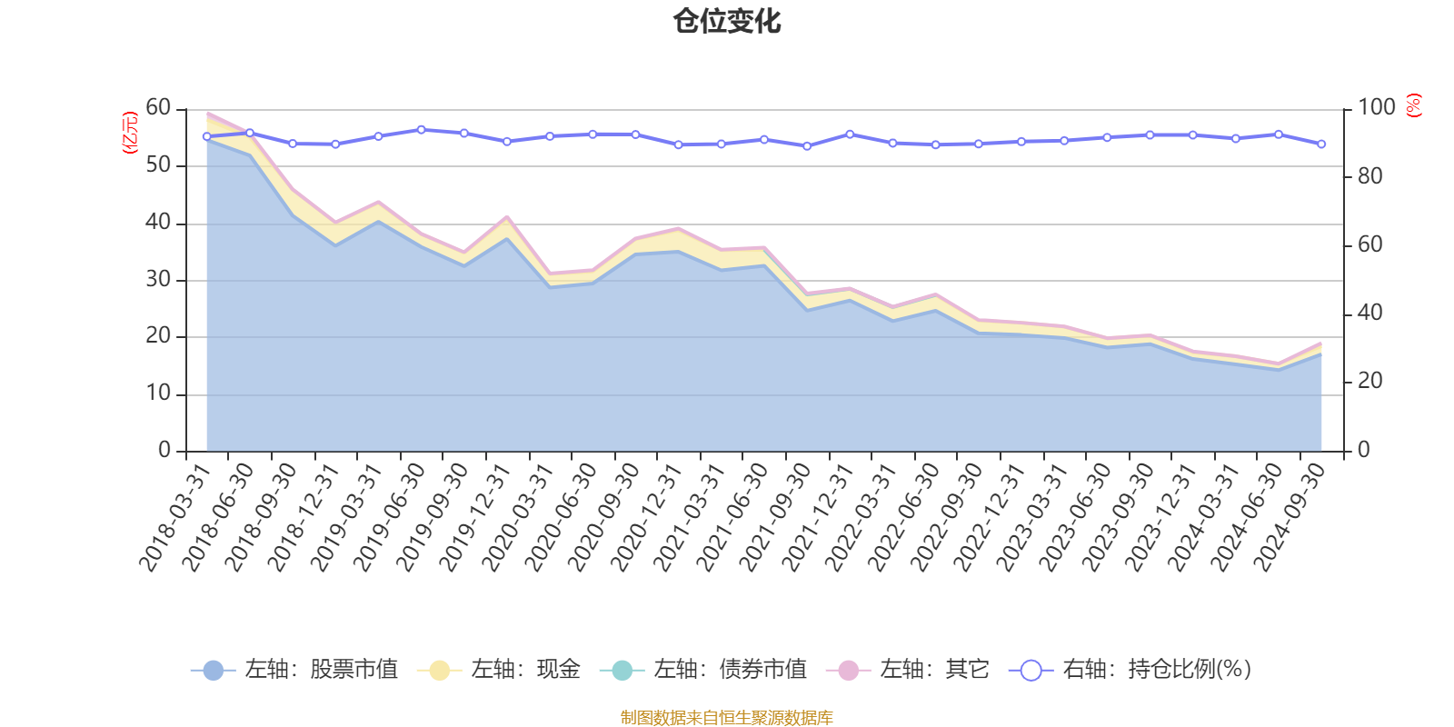 据定期报告数据统计,近三年平均股票仓位为91.13%,同类平均为88.67%。2019年上半年末基金达到93.99%的最高仓位,2021年三季度末最低,为89.16%。