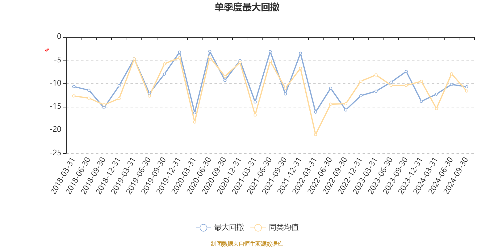 截至10月31日,基金近三年最大回撤为42.52%,同类可比基金排名43/72。其中,单季度最大回撤出现在2020年一季度,为16.27%。