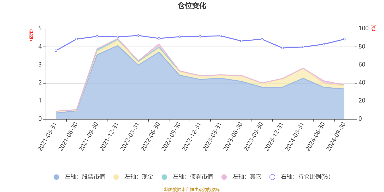 据定期报告数据统计,近三年平均股票仓位为87.77%,同类平均为87.99%。2022年一季度末基金达到92.55%的最高仓位,2021年一季度末最低,为75.78%。