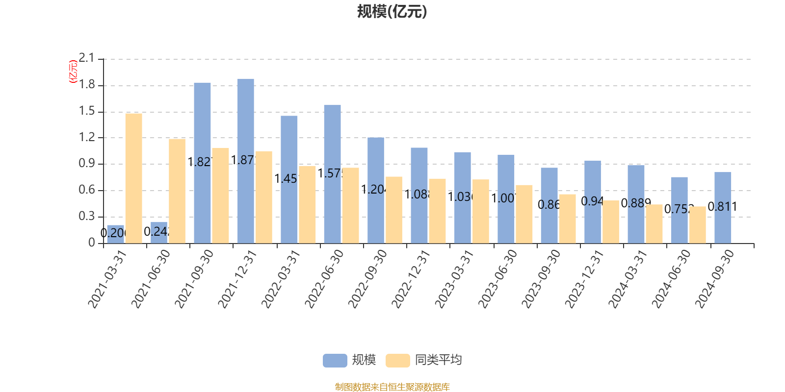 截至9月30日,基金近三年夏普比率为-0.1966,位于同类可比基金44/71。