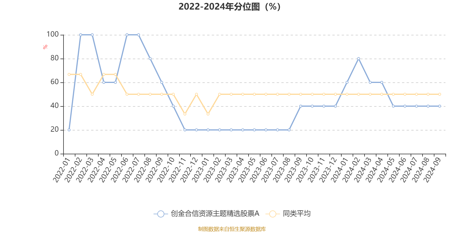 通过所选区间该基金净值增长率分位图,可以观察该基金与同类基金业绩比较情况。图为坐标原点到区间内某时点的净值增长率在同类基金中的分位数。