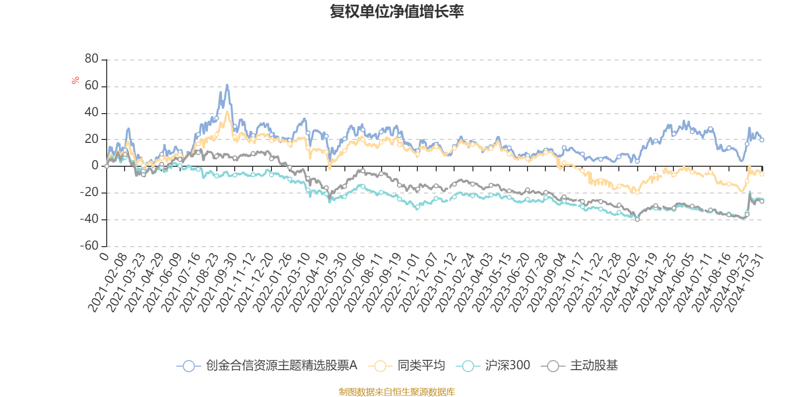 截至10月31日,创金合信资源主题精选股票A近三个月复权单位净值增长率为2.97%,位于同类可比基金7/10;近半年复权单位净值增长率为-4.07%,位于同类可比基金6/10;近一年复权单位净值增长率为11.47%,位于同类可比基金6/9;近三年复权单位净值增长率为-5.93%,位于同类可比基金4/6。