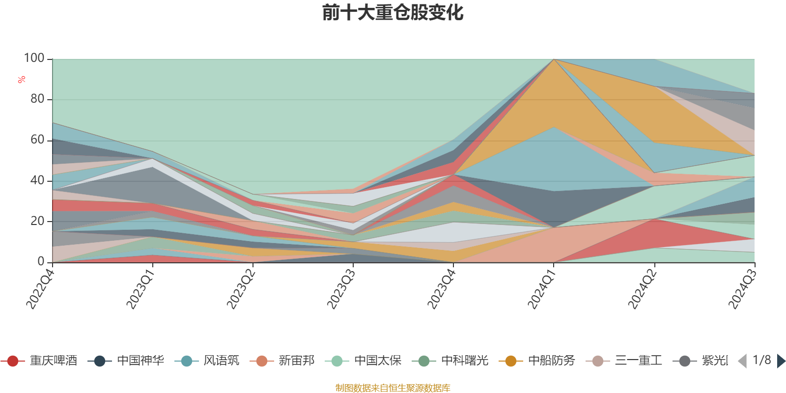 截至2024年三季度末,基金十大重仓股分别是药明康德、宁德时代、盐湖股份、钱江摩托、爱尔眼科、泰格医药、当升科技、中芯国际、顺丰控股、中国太保。