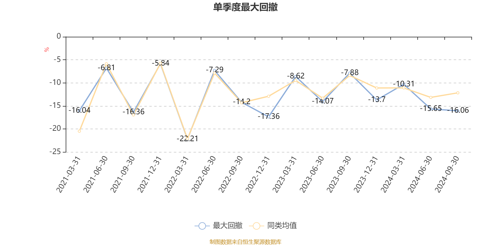截至10月31日,基金近三年最大回撤为43.49%,同类可比基金排名68/113。其中,单季度最大回撤出现在2022年一季度,为22.21%。