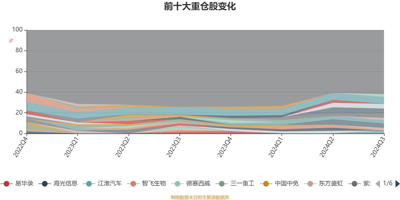 截至10月31日,基金近三年最大回撤为57.56%,同类可比基金排名23/185。其中,单季度最大回撤出现在2024年一季度,为22.42%。