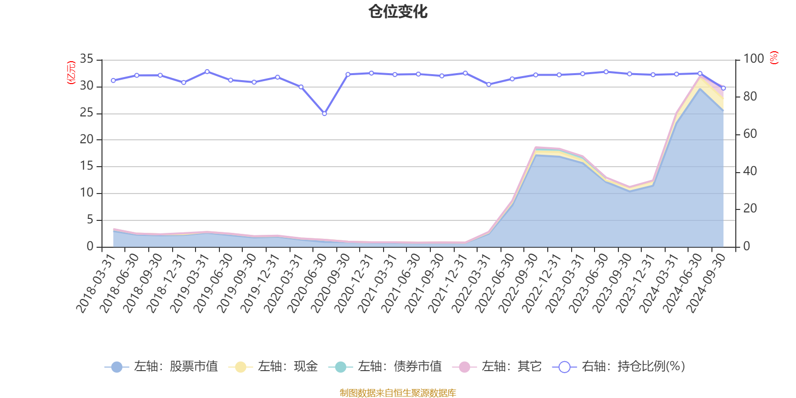 据定期报告数据统计,近三年平均股票仓位为91.13%,同类平均为83.64%。2019年一季度末基金达到93.65%的最高仓位,2020年上半年末最低,为71.23%。