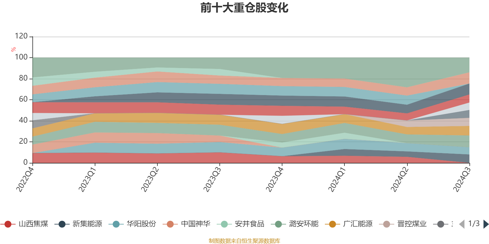 该基金持股集中度较高,近2年前十大重仓股集中度长期超过60%。截至2024年三季度末,基金十大重仓股分别是潞安环能、山煤国际、淮北矿业、广汇能源、新集能源、晋控煤业、陕西煤业、中远海控、平煤股份、华阳股份。