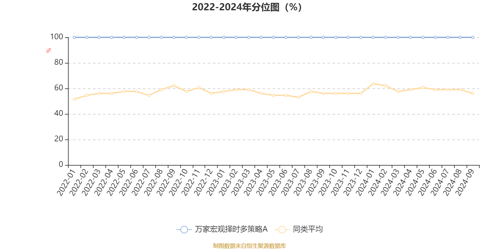 通过所选区间该基金净值增长率分位图,可以观察该基金与同类基金业绩比较情况。图为坐标原点到区间内某时点的净值增长率在同类基金中的分位数。