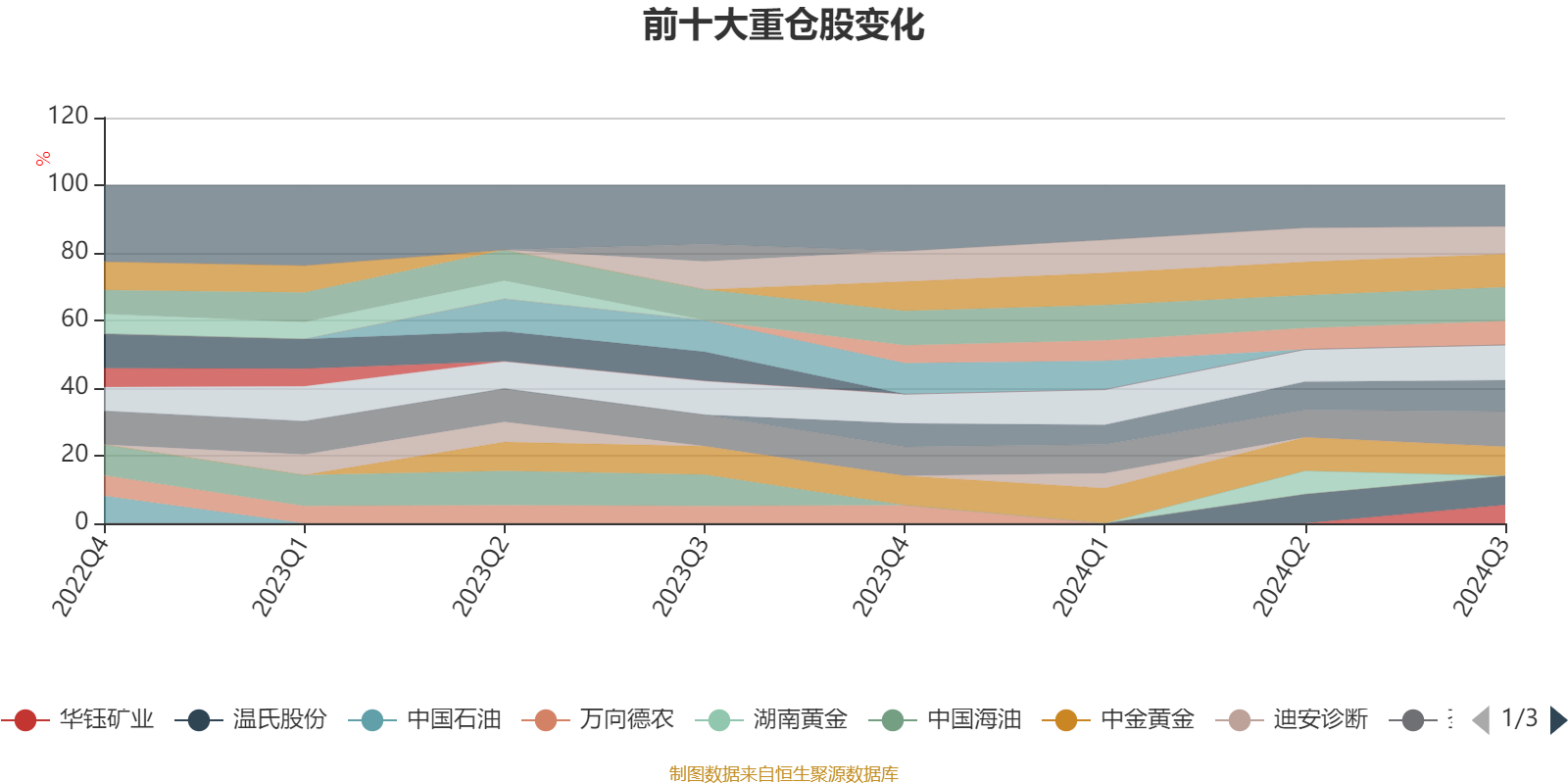 该基金持股集中度较高,近2年前十大重仓股集中度长期超过60%。截至2024年三季度末,基金十大重仓股分别是盛达资源、荃银高科、山金国际、赤峰黄金、巨星农牧、温氏股份、中金黄金、山东黄金、潜能恒信、华钰矿业。