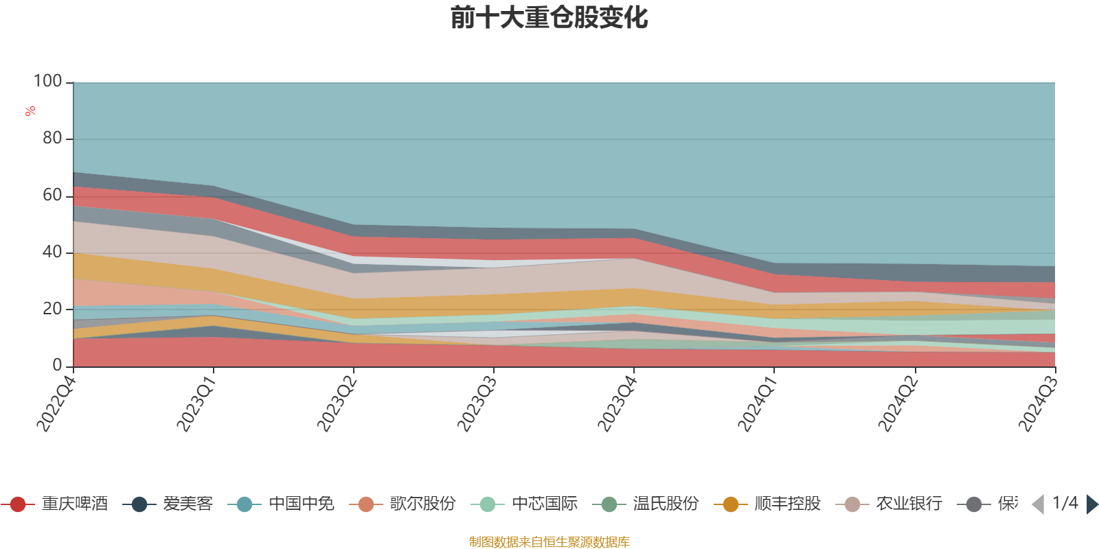 截至2024年三季度末,基金十大重仓股分别是东方财富、招商银行、华利集团、重庆啤酒、蓝思科技、立讯精密、贵州茅台、新华保险、中国中车、中芯国际。