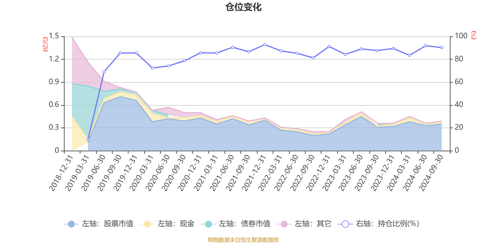 据定期报告数据统计,近三年平均股票仓位为87.84%,同类平均为84.47%。2021年末基金达到92.82%的最高仓位,2019年一季度末最低,为9.84%。