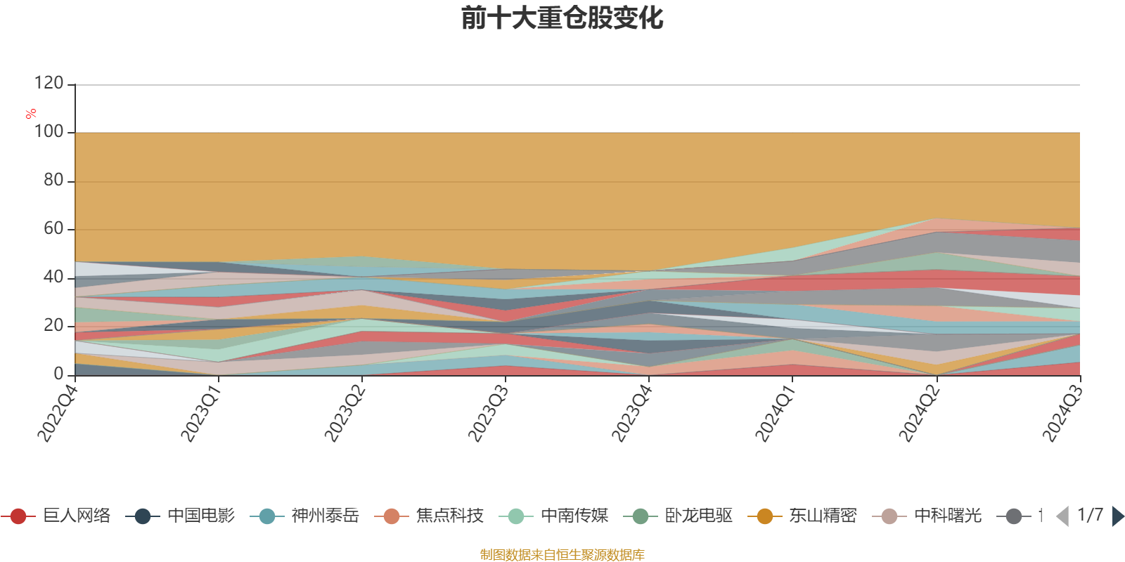 截至2024年三季度末,基金十大重仓股分别是中际旭创、工业富联、神州泰岳、吉比特、沪电股份、巨人网络、分众传媒、宗申动力、万丰奥威、三花智控。