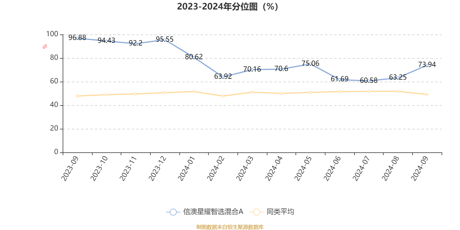 通过所选区间该基金净值增长率分位图,可以观察该基金与同类基金业绩比较情况。图为坐标原点到区间内某时点的净值增长率在同类基金中的分位数。