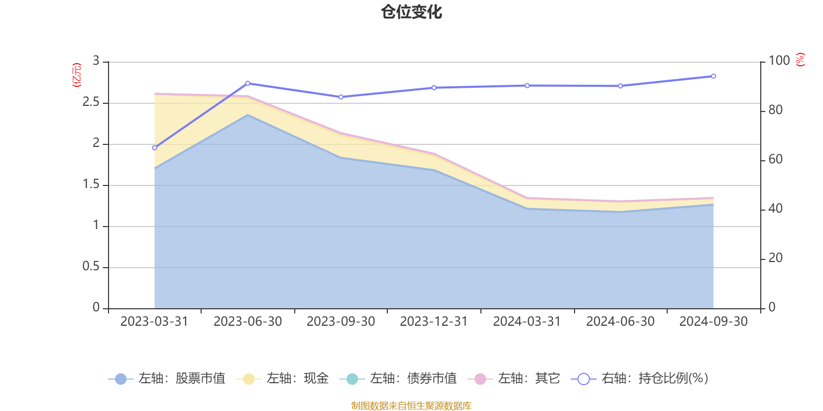 据定期报告数据统计,成立以来平均股票仓位为86.57%,同类平均为84.47%。2024年三季度末基金达到94.12%的最高仓位,2023年一季度末最低,为65.1%。