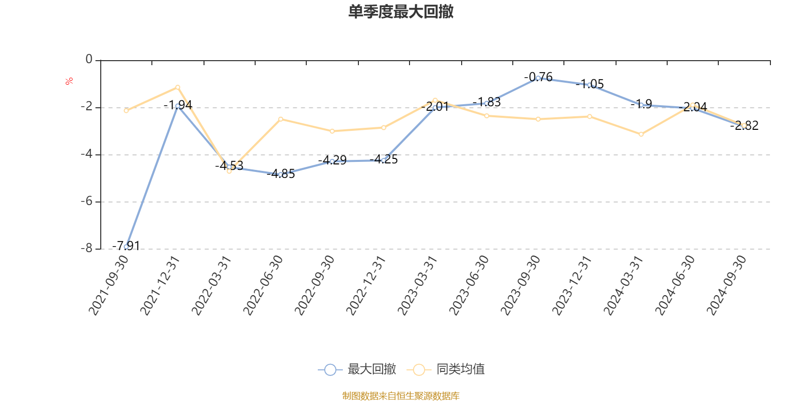 截至11月1日,基金近三年最大回撤为7.47%,同类可比基金排名271/478。其中,单季度最大回撤出现在2021年三季度,为7.91%。