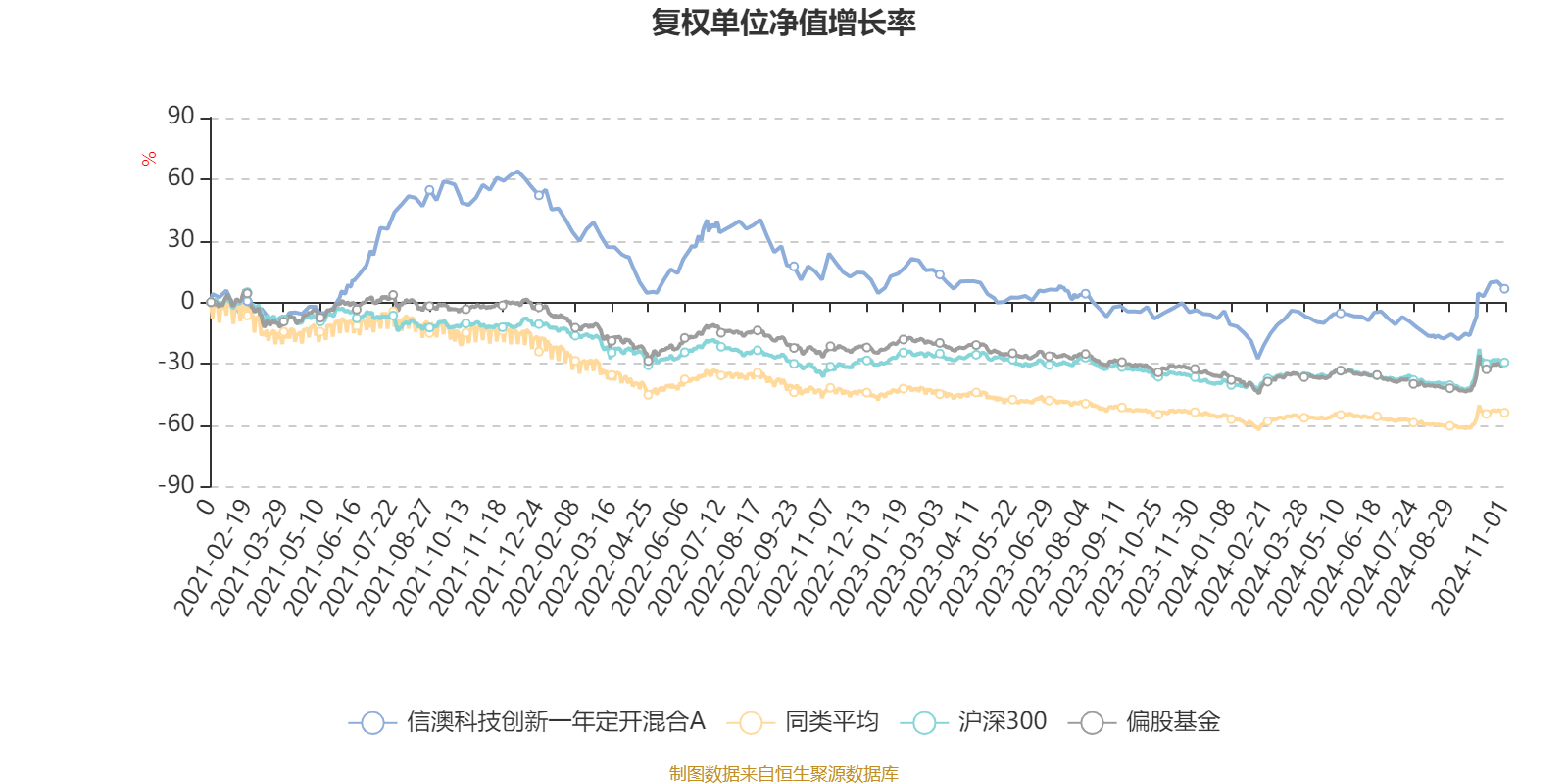 截至11月1日,信澳科技创新一年定开混合A近三个月复权单位净值增长率为21.17%,位于同类可比基金52/645;近半年复权单位净值增长率为13.17%,位于同类可比基金82/644;近一年复权单位净值增长率为13.45%,位于同类可比基金67/622;近三年复权单位净值增长率为-32.23%,位于同类可比基金206/389。