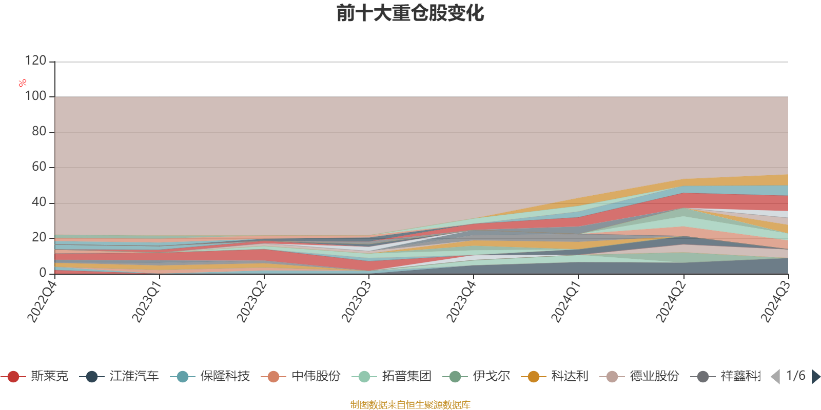 截至2024年三季度末,基金十大重仓股分别是江淮汽车、中际旭创、阳光电源、宁德时代、新易盛、德业股份、赛腾股份、中信博、三星医疗、上能电气。
