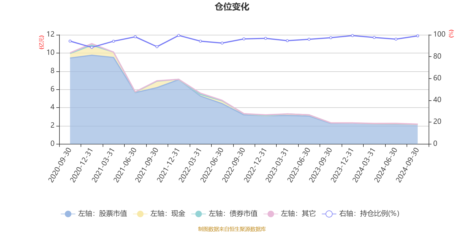 据定期报告数据统计,近三年平均股票仓位为96.56%,同类平均为84.88%。2021年末基金达到99.42%的最高仓位,2020年末最低,为88.47%。