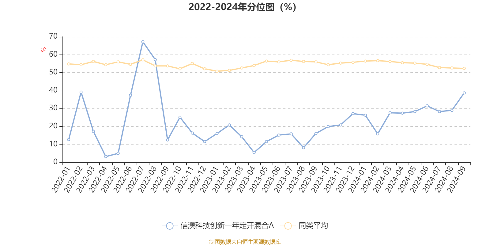 通过所选区间该基金净值增长率分位图,可以观察该基金与同类基金业绩比较情况。图为坐标原点到区间内某时点的净值增长率在同类基金中的分位数。